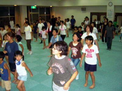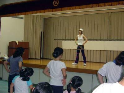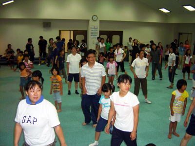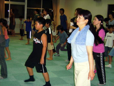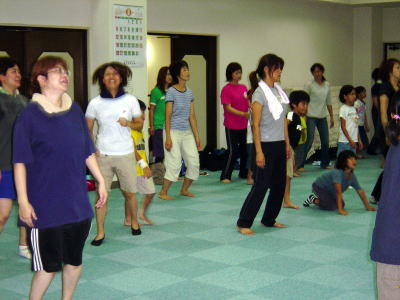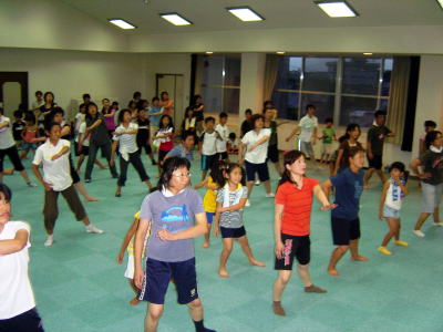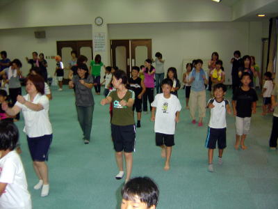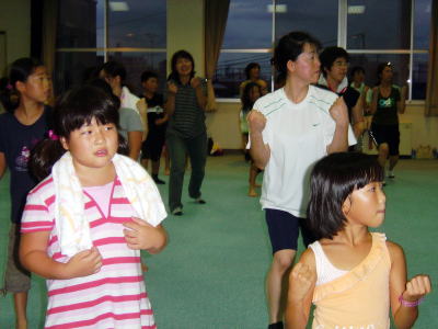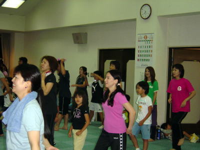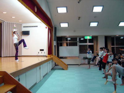 インストラクターの動きに合わせて 親子でエアロビクス