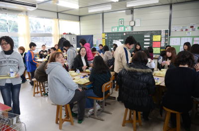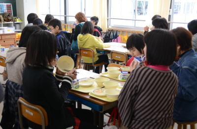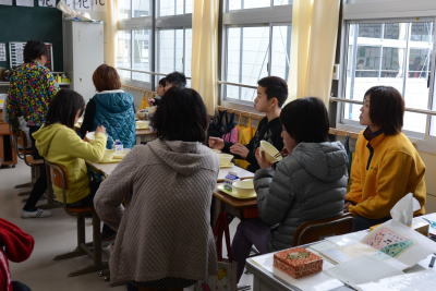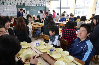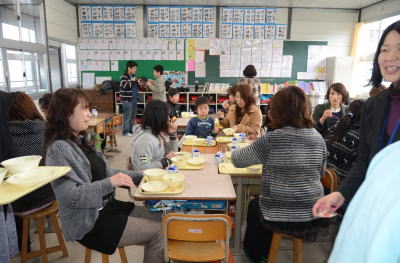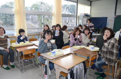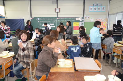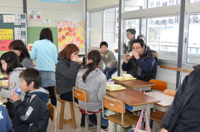 一方6年生は 親子で仲良く給食をいただいてました。 |