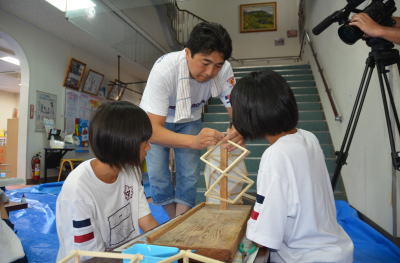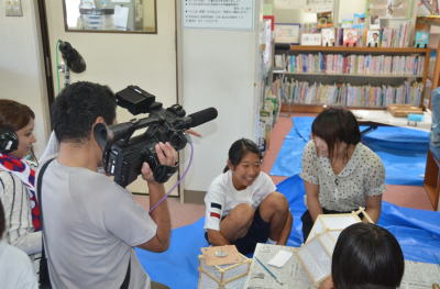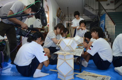 | 長崎国際テレビNIBが取材に訪れました。 後日放送されるそうです。 放送日は今見てるホームページ最後、子ども精霊船ができあがり次第、お知らせします。 |